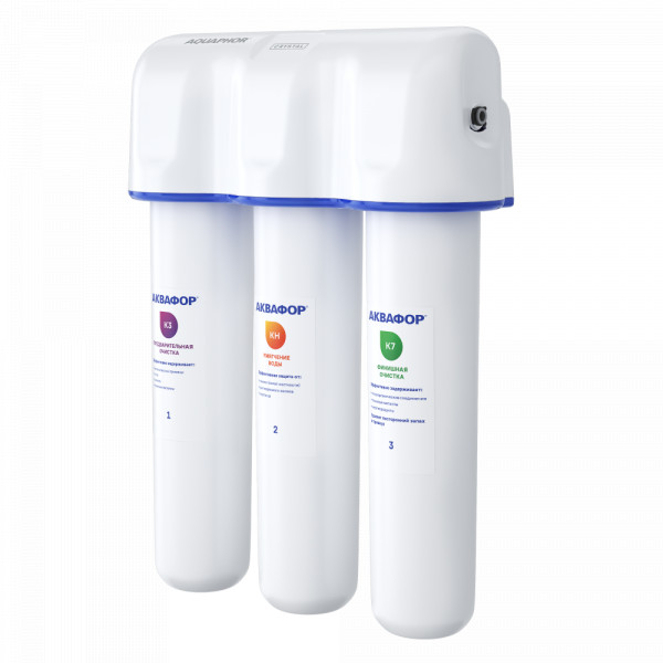 Обратноосмотические фильтры используются для абсолютной защиты от накипи, т.к. полностью устраняют соли жесткости из воды.нетЧисло ступеней очисткиКартриджи последовательно очищают воду и от видимых примесей, и от растворенных. Первый картридж задерживает более крупные частицы, а каждый последующий - более мелкие. Чем больше ступеней - тем лучше фильтр очистит воду: поймает более мелкие видимые частицы ржавчины, песка и ила, успеет захватить из воды максимум растворенных примесей - хлора, нитратов, тяжелых металлов и других.3МинерализацияПроисходит после финишной очистки воды. Необходима прежде всего в фильтре обратного осмоса, поскольку такой фильтр полностью устраняет из воды все примеси, в том числе минералы. Минералы добавляются в оптимальной концентрации - для пользы и привычного вкуса воды.нетПостфильтрацияФинальный этап очистки воды: картриджи постфильтрации удаляют самые мелкие механические частицы и кондиционируют воду, придавая ей более приятный вкус.нетНакопительная емкостьОбычно нужна в фильтрах обратного осмоса. Глубокая фильтрация требует времени. Чтобы Вам не приходилось ждать, пока вода наберется в чайник или кастрюлю, почти во всех моделях используется накопительный бак для чистой воды или другая емкость. В стандартном фильтре обратного осмоса под мойку воды в баке достаточно для семьи из 5-6 человек.нетФильтрующий модуль в комплектедаОтдельный крандаДавление в водопроводе не более, атмМаксимальное давление воды на входе в систему, при котором возможна стабильная работа фильтра.6,5Ширина, смОбратите внимание на габариты фильтра, и измерьте, сколько свободного пространства в предполагаемом месте установки.26,0Глубина, смОбратите внимание на габариты фильтра, и измерьте, сколько свободного пространства в предполагаемом месте установки.9,0Защита корпуса от гидроударовдаИсходная водаЖесткая вода – вода с избытком минеральных солей. От нее появляется накипь в чайнике, известковый налет на сантехнике и разводы на посуде. Мягкая вода – та, в которой мало минеральных солей. Нет накипи в чайнике и разводов на посуде. Фильтры для мутной воды и фильтры от ржавчины, как правило, имеют несколько стадий очистки и дополнительный полипропиленовый картридж. Он задерживает механические частицы ила, песка и ржавчины и защищает картриджи более глубокой очистки.жёсткаяУстраняет мутностьМутность водопроводной воды может говорить о том, что в ней много мелких механических частиц. Важно, чтобы в фильтре был установлен дополнительные картридж механической предфильтрации (полипропиленовый) - он продлит жизнь остальным картриджам более тонкой очистки.нетУстраняет ржавчину, бурый осадокЛюбой фильтр под мойку удалит из воды крупные и мелкие частицы ржавчины. Некоторые фильтры имеют повышенный ресурс по железу: они дольше служат в такой воде, поскольку лучше подходят для удаления из воды железа и механических частиц ржавчины.нетЗащита от бактерийВсе проточные фильтры в той или иной степени защищают от бактерий. Например, добавление серебра препятствует их размножению. Это стандартная степень защиты. Если в семье есть дети, пожилые люди или аллергики, воду рекомендуется обеззараживать, то есть полностью удалять микроорганизмы. Повышенную защиту от бактерий дают фильтры с половолоконной мембраной. Это пучок тр