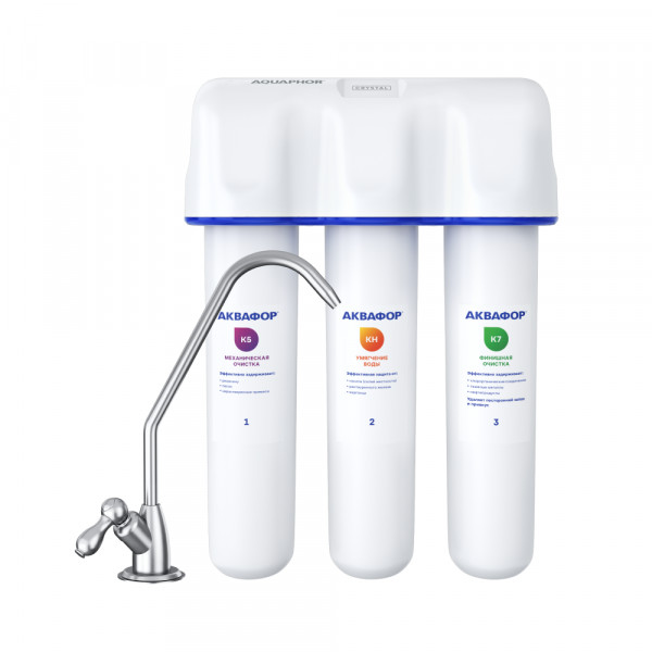 Не забывайте учитывать и срок службы фильтра: он указан в паспорте и определяет, когда модуль нужно заменить, даже если ресурс активной фильтрации в литрах еще есть.4000Скорость фильтрации2 л/минРабочая температура, °Cот +5 до +40Высота, смОбратите внимание на габариты фильтра и измерьте, сколько свободного пространства в предполагаемом месте установки.37,5Число ступеней очисткиКартриджи последовательно очищают воду и от видимых примесей, и от растворенных. Первый картридж задерживает более крупные частицы, а каждый последующий - более мелкие. Чем больше ступеней - тем лучше фильтр очистит воду: поймает более мелкие видимые частицы ржавчины, песка и ила, успеет захватить из воды максимум растворенных примесей - хлора, нитратов, тяжелых металлов и других.3Фильтрующий модуль в комплектедаОтдельный крандаДавление в водопроводе не более, атмМаксимальное давление воды на входе в систему, при котором возможна стабильная работа фильтра.6,5Ширина, смОбратите внимание на габариты фильтра, и измерьте, сколько свободного пространства в предполагаемом месте установки.28,0Глубина, смОбратите внимание на габариты фильтра, и измерьте, сколько свободного пространства в предполагаемом месте установки.10,5Защита корпуса от гидроударовдаИсходная водаЖесткая вода – вода с избытком минеральных солей. От нее появляется накипь в чайнике, известковый налет на сантехнике и разводы на посуде. Мягкая вода – та, в которой мало минеральных солей. Нет накипи в чайнике и разводов на посуде. Фильтры для мутной воды и фильтры от ржавчины, как правило, имеют несколько стадий очистки и дополнительный полипропиленовый картридж. Он задерживает механические частицы ила, песка и ржавчины и защищает картриджи более глубокой очистки.жёсткаяЗащита от бактерийВсе проточные фильтры в той или иной степени защищают от бактерий. Например, добавление серебра препятствует их размножению. Это стандартная степень защиты. Если в семье есть дети, пожилые люди или аллергики, воду рекомендуется обеззараживать, то есть полностью удалять микроорганизмы. Повышенную защиту от бактерий дают фильтры с половолоконной мембраной. Это пучок трубок с порами размером 0,1 микрон (что в 1000 раз тоньше человеческого волоса) - бактерии и яйца паразитов “застревают”, как в “сите”. Полученную воду не придется кипятить и можно использовать для приготовления детского питания. Абсолютную защиту обеспечат фильтры обратного осмоса, которые не пропускают через обратноосмотическую мембрану ничего, кроме воды.стандартнаяПоловолоконная мембранаЭто пучок трубок с порами размером 0,1 микрон (что в 1000 раз тоньше человеческого волоса). Бактерии и яйца паразитов “застревают”, как в “сите”. Полученную воду не придется кипятить и можно использовать для приготовления детского питания.нетУдобно менять модулидаЗанимает мало местада