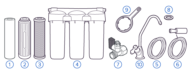 В фильтрах обратного осмоса установлена мембрана, которая не пропускает ничего, кроме воды (вода проходит через неё под давлением). Такой фильтр делает безопасной водопроводную воду любого качества, удаляя все вредные примеси: бактерии, вирусы, хлор, тяжелые металлы, нитраты, фармацевтику. Обратноосмотические фильтры используются для абсолютной защиты от накипи, т.к. полностью устраняют соли жесткости из воды. |
