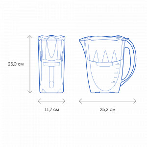 Объем воронки, л1,4Применениедля холодной водыОбъем кувшина, л2,8Помещается в дверцу холодильниканетКрышкаслайдерСчётчик замены модулямеханическийРесурс модуля, л350