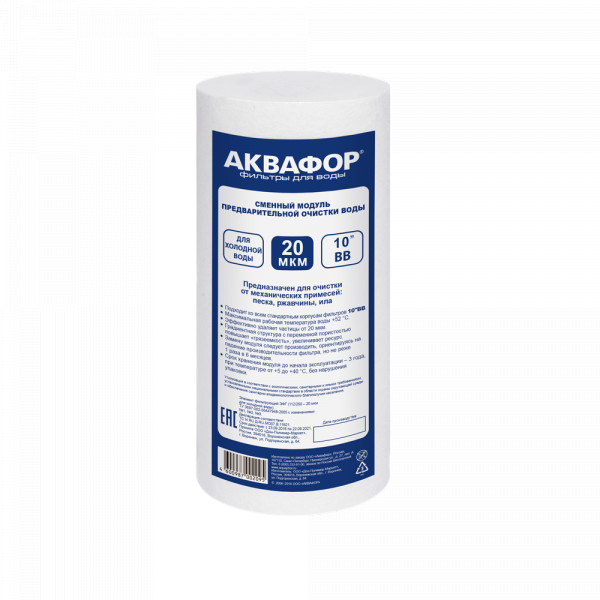 Механическая фильтрацияЗадерживает ржавчину, ил, песок, как “сито”. Если в фильтре несколько картриджей - первый отсекает самые крупные частицы, а каждый последующий - более мелкие. Существуют картриджи, в которых есть только механическая очистка (полипропиленовые, не “впитывают” растворенные примеси). Они обычно стоят первыми по ходу воды, чтобы продлить жизнь угольным (сорбционным) картриджам, которые ещё и впитывают вредные примеси, как губка.даСорбцияСпособность “впитывать” из воды растворенные, “невидимые” вредные примеси, по принципу губки. Активированный уголь - основной сорбционный материал, который используется в картриджах фильтров для питьевой воды. Например, именно так из воды удаляется хлор.нетФильтрует частицы крупнее, мкмЧем меньше цифра, тем более мелкие частицы способен задержать фильтр. Например, любой фильтр под мойку справится с ржавчиной, илом и песком, но не каждый - с бактериями (на это способен картридж с половолоконной мембраной и системы обратного осмоса). Если в фильтре несколько картриджей - первый отсекает самые крупные частицы, а каждый последующий - более мелкие. Цифра указана для картриджа самой тонкой очистки.20,0ВодаКартриджи и корпуса фильтров рассчитаны на определенную температуру воды. Данные технические характеристики важно учитывать, поскольку от этого зависит качество очистки и срок службы фильтра.холоднаяТемпература фильтруемой воды+5...+38 °C