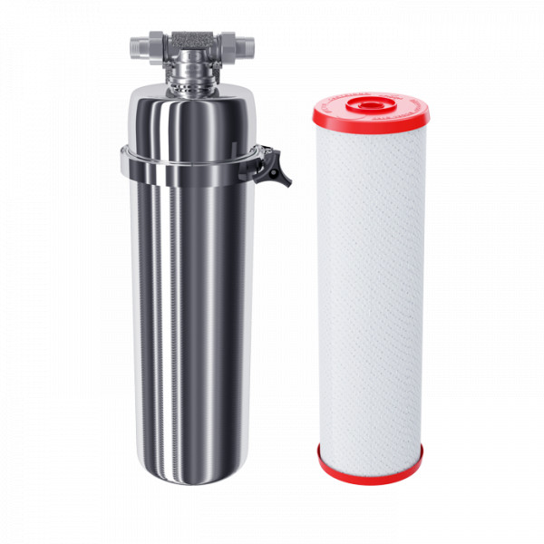Корпус изготовлен из нержавеющей стали и не подвержен деформации или коррозии. Он выдержит любые перепады давления и защитит от протечек. Гарантированный срок службы фильтра – 10 лет, однажды установив его, можно закрыть вопрос чистой воды в доме на долгие годы. Элегантный дизайн фильтра впишется в современную ванную, кухню или офис, он выдержит давление до 20 атмосфер, устойчив к коррозии и механическим повреждениям.